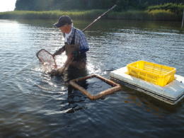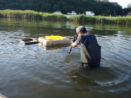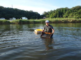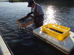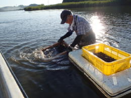 振るって、ゴミ、13ミリ以上のシジミのみにします |